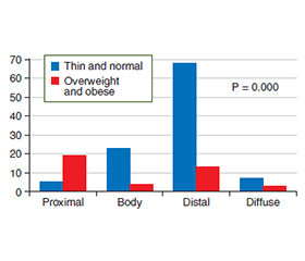 Background. Gastric cancer is the fourth most common cancer in the world. In this research project, we tried to touch this important topic and find out where we stand in regard to this cancer with its relatively poor prognosis and lack of response to treatment. The study aimed to determine the gastric cancer pattern, and risk factors in Iraqi population. Materials and methods. Of the approachable regions with trustable data collection, we chose two regions: Sulaymaniyah and its renowned Hiwa Cancer Center and Babylon to comprehensively study demography, clinical presentations, prevalence, tumor type, site and stage of the disease, body mass index and adverse past medical history. Socioeconomic status and education level were also taken into consideration. Diet type, saltiness, spiciness and temperature association was critically analyzed. Blood group, family history, smoking habit and alcohol consumption were also recorded. Results. A total of 150 patients with gastric cancer were involved in this study. Male to female ratio was 1.3 : 1. The median ages of male and female were 61 and 52 years, respectively. The tumor distribution by anatomical site was as follows: the lesion was distal in 83 (55 %) patients, proximal in 26 (17 %), involved the body and fundus in 16 (11 %), the entire stomach in 12 (8 %). In 13 (9 %) of cases, lesser curve was the site. The commonest histologic subtype was adenocarcinoma of the intestinal type in 69 patients (46 %). Diffuse type was seen in only 43 (29 %) patients, 14 (9 %) had mixed and in 24 (16 %), the histopathology was unclassifiable. Ulcerative lesion was reported in 57 % of cases. Polypoid or fungating lesions were found in 28 % and infiltrative in 15 %. The commonest endoscopic finding was ulcerative type seen in 57 % of patients. Most of the gastric carcinoma cases (44 %) fell in stage IV disease. Among people with stage IV, only 11 have Her-2 status, negative in 10 cases (15.15 %) and positive in only one patient. The commonest site for metastases was in the liver followed by peritoneum. Conclusions. Despite its low incidence, some epidemiological features of gastric cancer in Iraq mimic those of the high-risk countries. Adenocarcinoma accounts for the highest number of gastric cancers. Most patients are in their 5 and 6 decades of life. The incidence of gastric carcinoma in patients younger than 50 years is higher than in the Western world. Compared to Western literature, our patients were presenting more with intestinal-type adenocarcinoma and less with diffuse type. Most patients had advanced stages of the disease.
